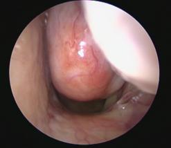 A juvenile nasopharyngeal angiofibroma on the left nasal cavity